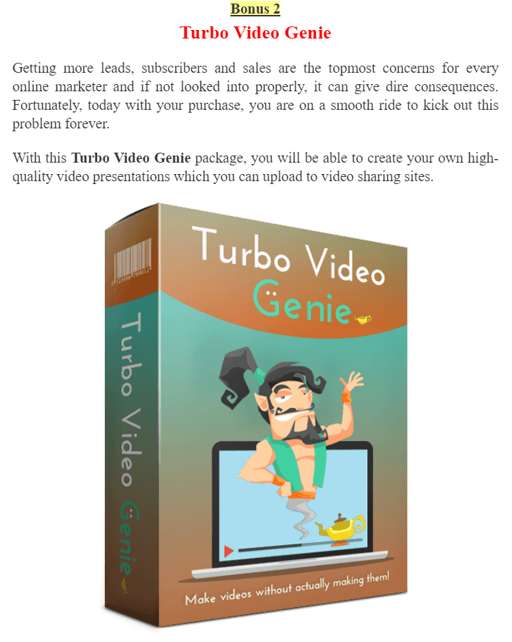 Plus, this generator is unlike anything you have seen before. It includes the ability for affiliates to customize the video and even to add their own custom bonuses.