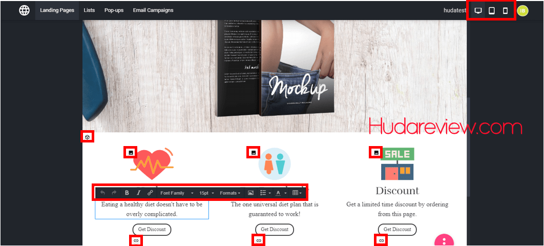 You can also preview your sales page in other devices by choosing the icon on the left side of the page.