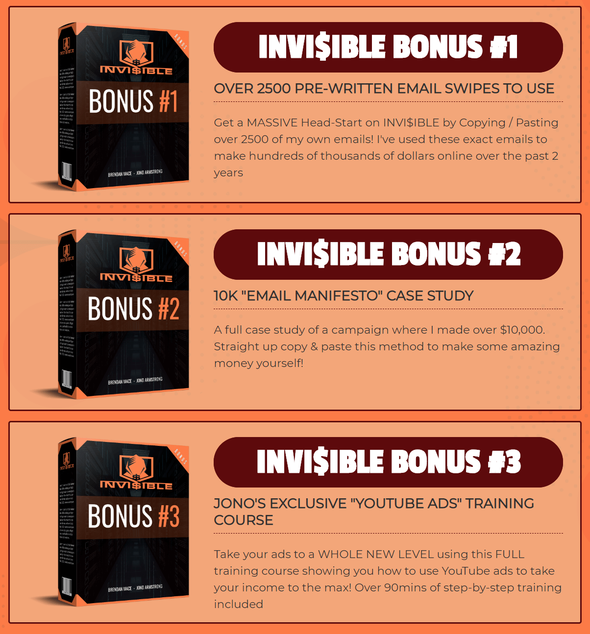 You will be given these bonuses after buying Invi$ible: