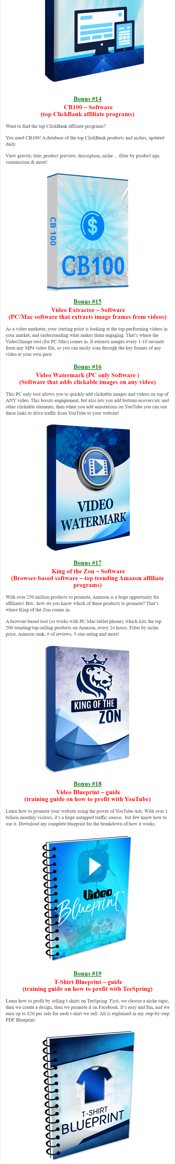 In this OTO, you will get the opportunity to use the DFY bonus pages inside their cloud-based bonus creator. There are 30 bonus packages with which they have generated over $200,000 gross.