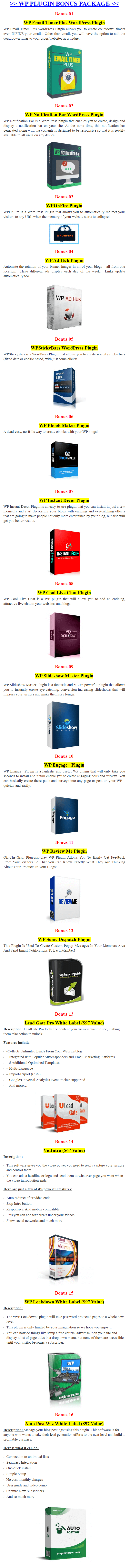 This also includes a Free Bonus feature of a custom download page for each plugin 20 landing/download pages in total.