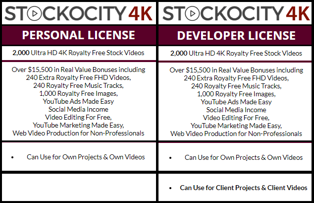 Have a look at the table below to see the comparison between Stockocity 4K and other stock video sites: