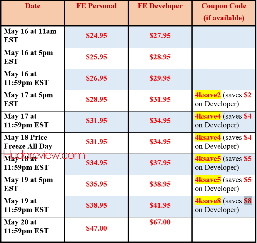 Please have a look at the summary below to get to know the specific price in each period and take advantage of any Coupon Code available. Also, as you can see from the table, the price will go up soon and never decrease so you should complete your order as soon as possible.